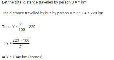 If person B completes his journey by bus in 4 hours, then what is the total distance travelled by person B in his whole journey (approx)?