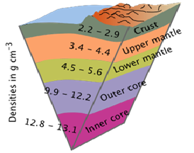 The inner core is the innermost part of earth and due to high temperatures (more than 60000 Celsius) it ought to be in a liquid state. But researches have shown that it is in a solid state due to extreme pressure of the overlying layers. Inner core also happens to be the densest layer. Infact the density of earth decreases as one moves away from the centre towards the surface.