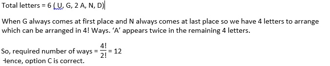 Multiple Choice Questions on In how many different ways the letters of the word 39 UGANDA 39 can be arranged such that 39 G 39 al........... for Civil Services Exam (CSAT) Preparation