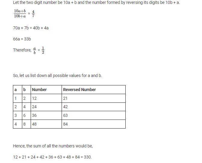 The ratio of a two-digit natural number to a number formed by reversing its digits is 4 : 7. Which of the following is the sum of all the numbers of all such pairs?