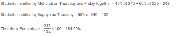 Students handled by Mehandi on Thursday and Friday are what percent of students handle by Supriya on Thursday?