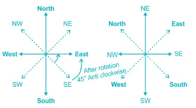 If South-east is called East, North-west is called West, South-west is called South and so-on,