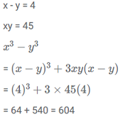 If x − y = 4 and xy = 45, then the value of x3 − y3 is: