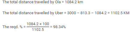 The distance travelled by Ola is approximately how much percentage of the distance travelled by Uber? (round off two decimal)