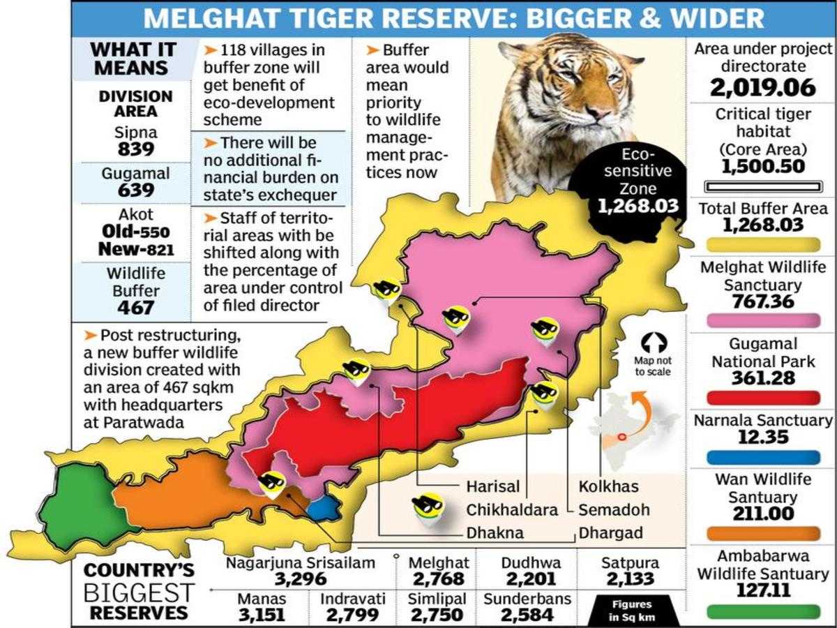 Context: Recently, the Chief Minister of Maharashtra has requested the Union government for considering an alternative alignment for the Akola-Khandwa rail line that passes through the Melghat Tiger Reserve.