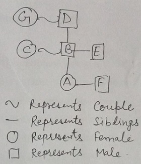 In a joint family of seven persons A, B,C, D, E, F and G, there are two married couples. G is a housewife. C is the wife of B. A is the granddaughter of G. D is the father-in-law of C and father of E. F is A’s brother and B’s son. How is B related to E ?