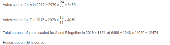 If in the year 2018, there will be an increase of 15% and 24% in the number of votes casted for Candidates A and F respectively and the total number of votes casted for Candidate C in the year 2017 was 2970. What would be the total number of votes casted for Candidates A and F in 2018?
