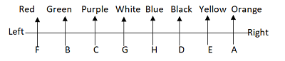 H’ is related to ‘White’ in a certain way based on the above arrangement. ‘B’ is related to ‘Red’ following the same pattern. ‘______’ is related to ‘Yellow’ following the same pattern.