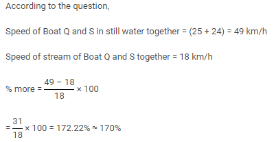 The speed of Boat Q and S in still water together is approximately how much percentage more than the speed of stream of the same boats together?