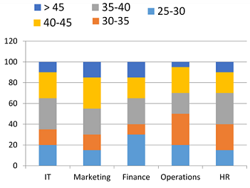 All the employees of age group more than 45 years from Finance department retire from their post and the same number of new employees join the same department of age group 30 – 35 years. If number of retired employees is 150, then find the number of employees in Finance department of age group 30 – 35 years.