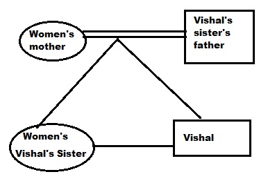 Indicating a woman in the photo, Vishal told that her mother is my sister's father's wife. How that woman is related to Vishal?