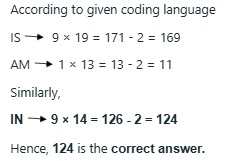In a certain code language, “IS” is coded as “169”, and “AM” is coded as “11”. How will “IN” be coded in that language?