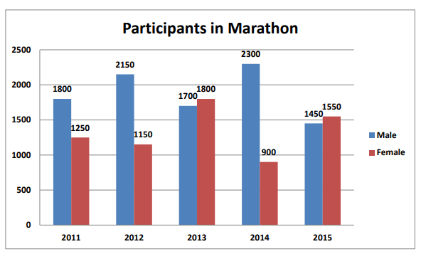The bar graph given below shows the number of male and female participants in City Marathon in five years 2011, 2012, 2013, 2014 and 2015.