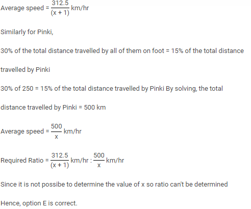 Let the time taken by Pinki = x hours Then according to the question, the time taken by Priyanka = x + 1 hours Now, For Priyanka 20% of the total distance travelled by all of them on foot = 16% of the total distance travelled by Priyanka 20% of 250 = 16% of the total distance travelled by Priyanka By solving, the total distance travelled by Priyanka = 312.5 km