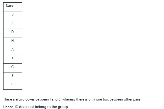 Nine boxes A, B, C, D, E, F, G, H, and I are kept one above the other not necessarily in the same order. Three boxes are kept between A and B. Equal number of boxes are kept above and below A. Number of boxes kept above B is same as the number of boxes kept below C. Only two boxes are kept between C and I. One box is kept between A and G, which is not kept immediate above I. No box is kept between F and D, which is not kept above F. E is placed below H, which is kept immediate below D.