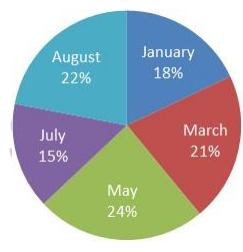 From common explanation, we have January = 18% of 15000 = 2700 March = 21% of 15000 = 3150 May = 24% of 15000 = 3600 July = 15% of 15000 = 2250 August = 22% of 15000 = 3300 Number of UVs produced in July, May and March = 2250 + 3600 + 3150 = 9000