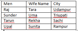 Read the following information carefully and answer the questions given below : Four young men Raj, Sunder, Tarun and Upal are married to Rekha, Sunita, Tara and Uma and the couples live in Rampur, Sanchi, Tirupati and Udhampur.