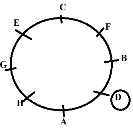 Given that A, B, C, D, E, F, G, H are sitting circular table is given below according to question