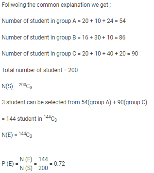 If three students are selected randomly, what is the probability that no student are selected from group B (use data only from table III)