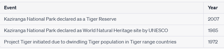 In which year Kaziranga National Park was declared as a Tiger Reserve?