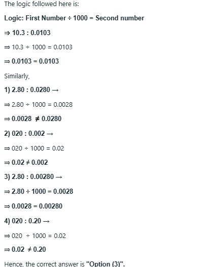 Select the number-pair in which the numbers are related in the same way as are in the given pair. 10.3 : 0.0103