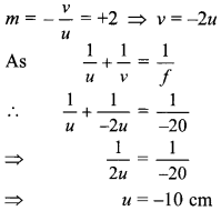 A concave mirror of focal length 20 cm forms an image having twice the size of object. For the virtual position of object, the position of object will be at