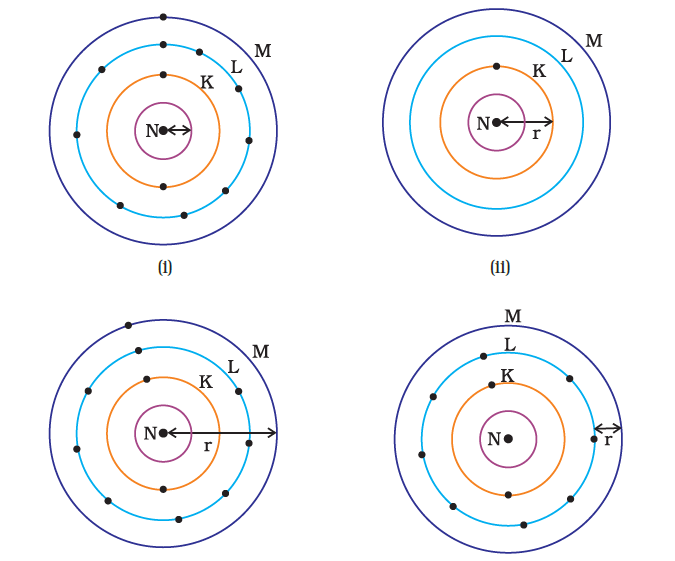 Which one of the following depict the correct representation of atomic radius(r) of an atom?