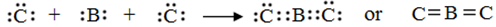 The covalent bond is formed by the sharing of electrons between two atoms. As the element B (which belongs to group 14) has 4 valence electrons which it can share with two elements of C type (from group 16) electrons to complete the octet of each included atom: