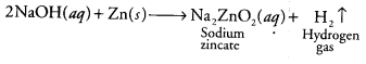 When a base like NaOH is treated with any active metal like Zn, it produces H2 gas. And the presence of the hydrogen gas can be tested by bringing a burning splinter/ matchstick near the gas produced. The gas will burn with a pop sound confirming the presence of hydrogen gas.