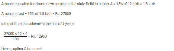 If Builder A saves 15% of the amount allocated for House development in the state Delhi and deposited that amount in a scheme which offers 12% simple interest per annum, then find that builder A will receive what amount as interest from the scheme at the end of 4 years from the investment.