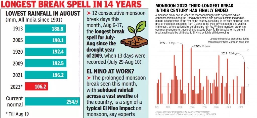 Context: According to the regional center of India Meteorological Department, the current monsoon break that started on August 7, 2023 has finally ended on August 18, 2023.