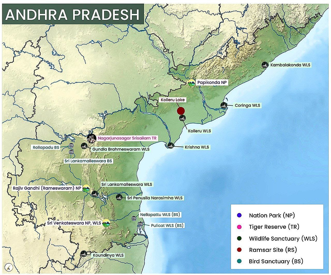 Location– It is part of the Godavari estuary, where the Coringa River merges with the Bay of Bengal in Andhra Pradesh’s Kakinada district.