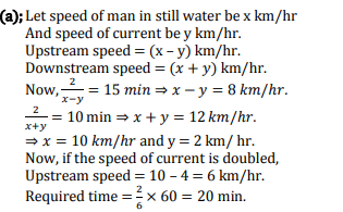 A man can row a distance of 2 km upstream in 15 min and returns the same distance in 10 min. How much time will he take to row the same distance upstream if due to a tide the speed of the current gets doubled?
