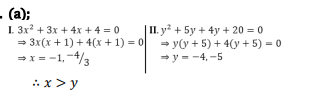 Directions : In each of the following questions, two equations (I) and (II) are given. You have to solve both the equations and give answer accordingly.