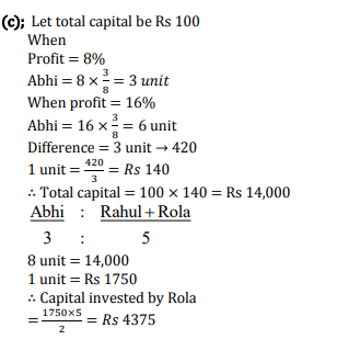 Abhi, Rahul & Rola enter into a business. Abhi received 3 8 th of total profit & remaining profit is divided equally between Rahul and Rola. If Abhi’s income increases by Rs 420 then total profit increased from 8% to 16%. Then find capital invested by Rola?