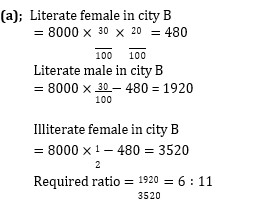 Directions : Given table shows total Population in five different cities, ratio of male to female population and percentage of literate population in these cities.