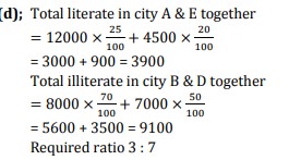 Directions : Given table shows total Population in five different cities, ratio of male to female population and percentage of literate population in these cities.