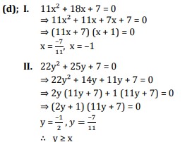 I. 11x² + 18x + 7 = 0 II. 22y² + 25y + 7 = 0