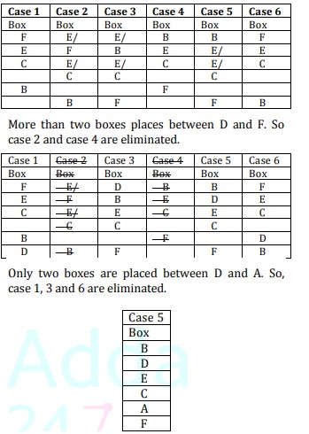 II. More than two boxes places between D and F. Only two boxes are placed between D and A.