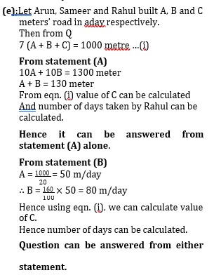 (B) Time taken by Arun alone to build 1 km road is 20 days and Sameer is 60% more efficient than Arun.