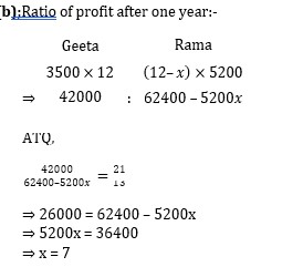 Geeta started a business by investing Rs. 3500. After ’x’ months, Rama joined her with a capital of Rs. 5200. At the end of the year, the ratio between Geeta’s profit to Rama’s profit is 21 : 13. Find the value of x.