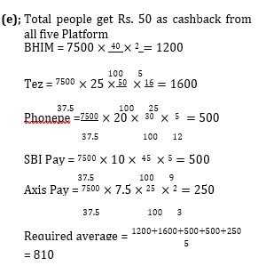 Find the average number of people, who get Rs. 50 as cashback from all five Platform?