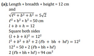 Sum of length, breadth and height of cuboid is 12 cm and length of its diagonal is ??√??. Then find the total surface area of cuboid.