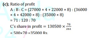 A and B started a business in partnership with the investment of Rs. 27000 and Rs. 36000 respectively, after 4 month A withdraw 5000 Rs. and B added 6000 Rs. more and C joined with 35000 Rs. if after one year they get a total profit of Rs. 130500, then find the profit share of C?