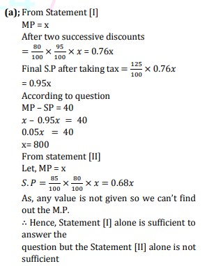 [II] Ram gave two successive discount of MP i.e., 15% & 20% whereas Ram kept M.P. 50% more than the C.P. of that item.