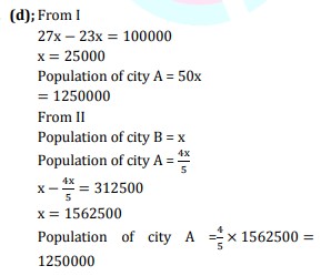 II. The population of city A is 80% of that of city B. The difference between populations of city A and city B is 312500.