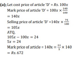 If retailor earn Rs.24 profit on selling article ‘D’ then find the Mark price of article ‘D’?