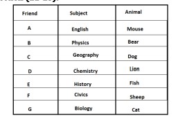 Directions : Study the following information carefully and answer the given questions: Seven friends A, B, C, D, E, F and G like different animals like Fish, Mouse, Bear, Dog, Lion, Sheep and Cat. Each friend also has different class namely Civics, History, English, Geography, Chemistry, Physics and Biology (not necessarily in the same order) sides.