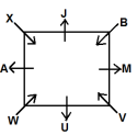 Study the following information carefully and answer the given questions. Eight persons U, V, J, A, X, W, B and M are sitting around a square table in such a way that four of them sit at four corners of the square while four sit in the middle of each of the four sides. The ones who sit at the four corners face the centre while those who sit in the middle of the sides face outside. A is sitting second to the right of U. U sits at one of the middle side of table. X sits second to the right of B. B is not the neighbor of U and A. There are three persons sits between A and M. J is not the neighbor of U. V sits second to the right of W.