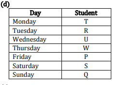 Directions : Study the information carefully and answer the questions given below. Seven students P, Q, R, S, T, U and W starts taking class from Monday to Sunday of the same week but not necessary in the same order. T is taking class one of the day before Wednesday. There are three persons taking class between T and P. neither Q nor R taking class on Wednesday. As many students taking class between P and S is same as the students taking between S and Q. R has taken class immediately before the day on which U is taking the class.